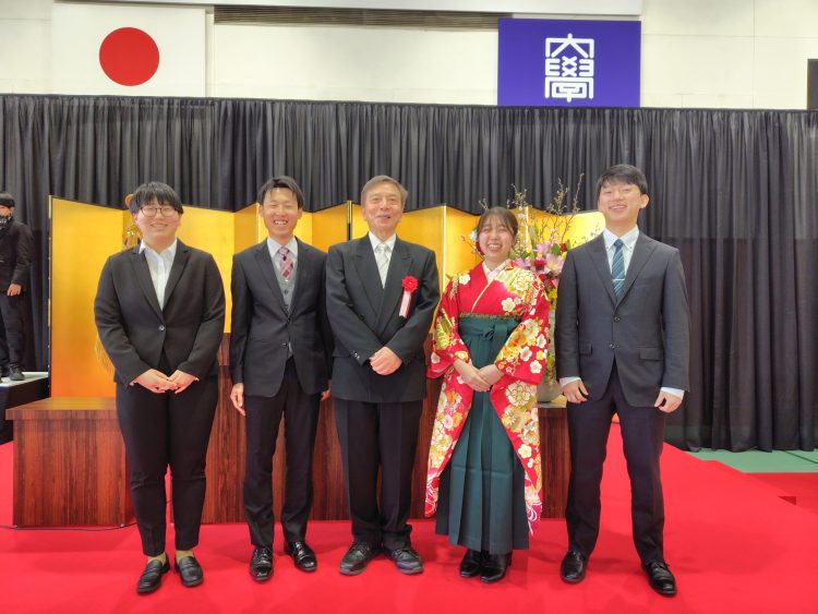 4学科の同窓会長賞受賞学生の皆さんと左向会長で写真撮影できました。